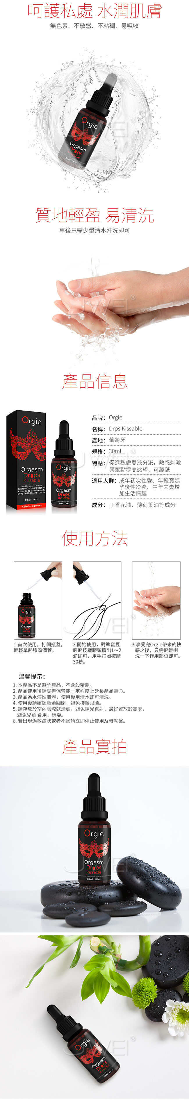 您還在假裝高潮嗎?女性快感高潮液採自天然植物萃取物製成,親和皮膚無傷害,不刺激讓您使用更安心。只需一滴即能快速發熱無需等待,喚醒您沉睡的高潮欲望,一觸即燃。此款貼近女性愛液可舔舐,保護女性私處盡情享受口交性愛~採水潤基底無色素、無香精色澤透亮讓您更易清洗喔~